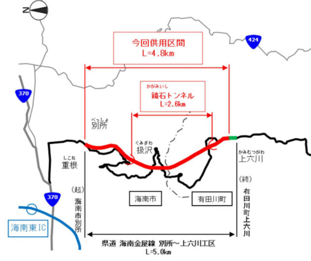 実は今回のドライブにはみかんを買うのとは別にもう一つの目的があって、令和8年1月18日(日)15時共用開始予定の海南市と有田川町を結ぶ鏡石トンネルを含むバイパスの偵察と言うか下見という目的もあります。