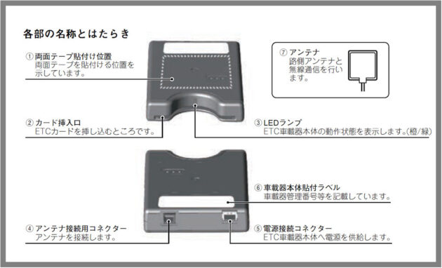 車載器前面にはカード挿入口とLEDランプのみのシンプルな外観です。