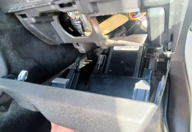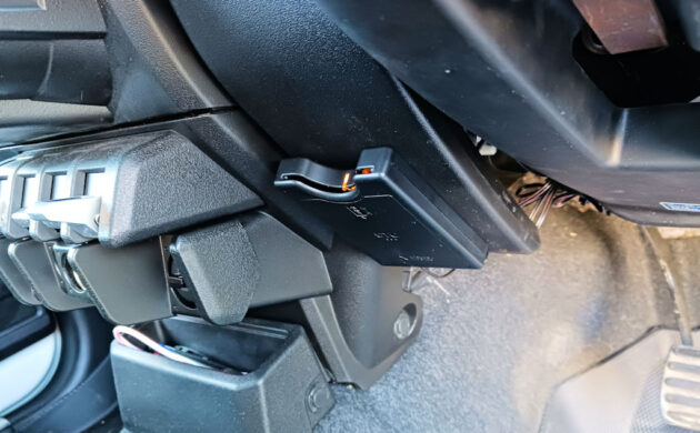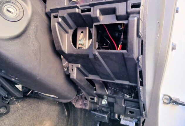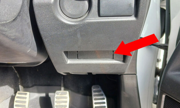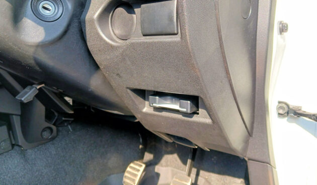 先ずは今回移設予定先であるハンドルコラム右側のパネルを外す事から始めます。