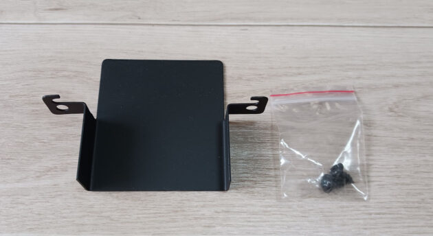 本体と固定用の黒いタッピングビスが2本付属しています。